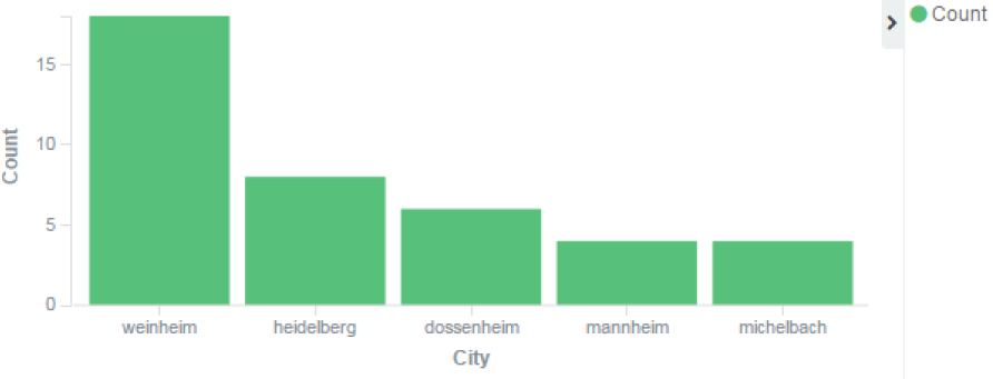 Kibana offers several kinds of visualization. The following example shows how to define a Vertical bar chart. For further information see the Kibana user guide.